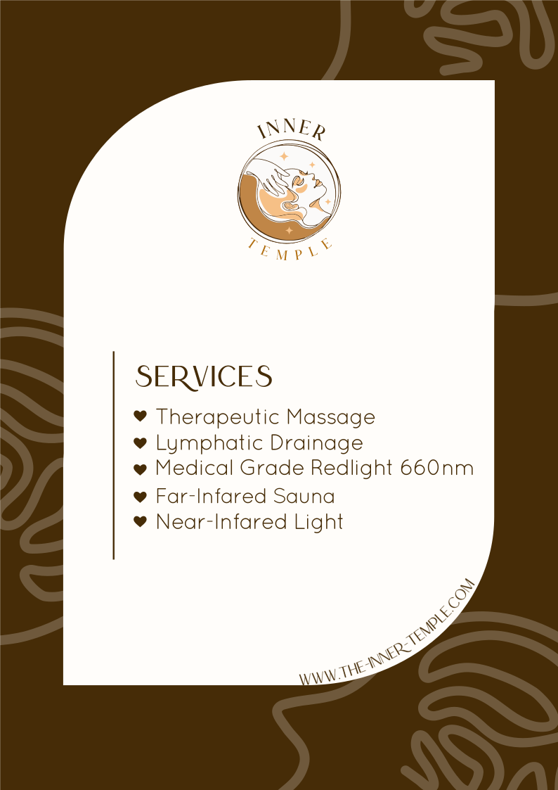 Inner Temple exists to restore balance through nervous system-regulating massage. We believe the body softens, heals, and releases tension when it feels safe—not rushed, not forced, not pushed. Every session is designed as a luxury, slow-down experience that honors the nervous system as the true foundation of wellbeing.